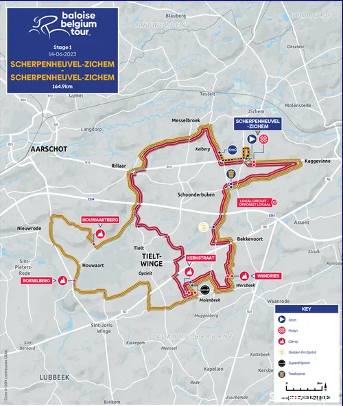 De start en finish van deze etappe vinden op dezelfde locatie plaats, namelijk in Scherpenheuvel, een stadje in Vlaams-Brabant. De renners zullen Scherpenheuvel ook niet uit het oog verliezen, aangezien de koers vier lokale ronden telt welke in de regio zijn uitgezet.
