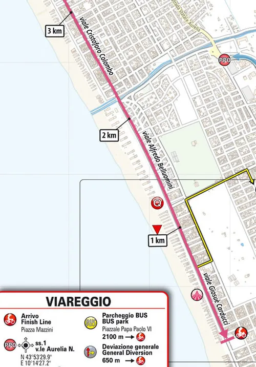 De ultieme slotfase is er eentje die als rechttoe rechtaan gedefinieerd mag worden. De laatste kilometers rijdt het peloton in een rechte streep op de finishlijn af. De mannen die weinig goesting hebben om zich in de debatten te mengen, draaien beter hun hoofd naar rechts en genieten van het prachtige uitzicht op de Ligurische Zee, een onderdeel van de Middellandse Zee.