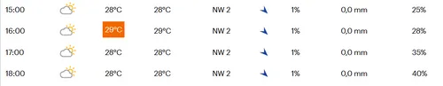 Het wordt een warm dagje in Spanje. 's Middags halen we temperaturen van zo'n 28 tot 29 graden Celsius, wat de renners zeker gaan voelen. Van de wind hoeven we vermoedelijk niet al te veel te vrezen. Die is met windkracht 2 niet al te sterk aanwezig. Deze komt uit het noordwesten, waardoor de renners hem het grootste deel van de dag in de zij krijgen. Neerslag valt er niet.