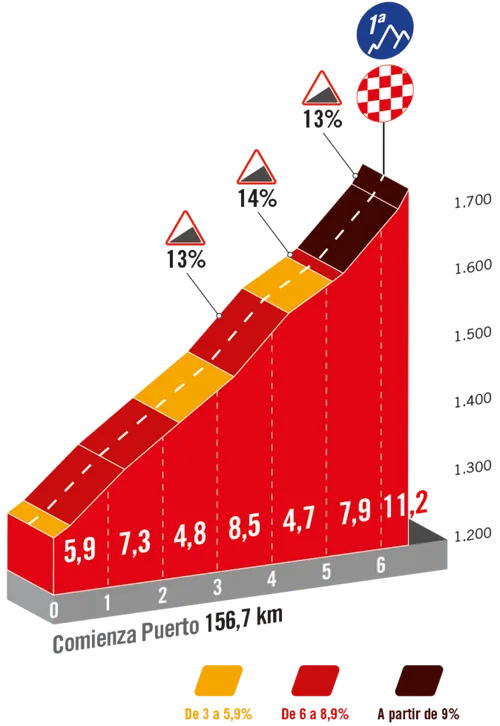 Eenmaal de storm is gaan liggen, kan de focus voor het overgrote deel op de laatste zeven kilometer van de rit komen. Deze lopen namelijk bergop: La Laguna Negra heet de beklimming, die in totaal 6,5 kilometer aan 6,8 procent is.