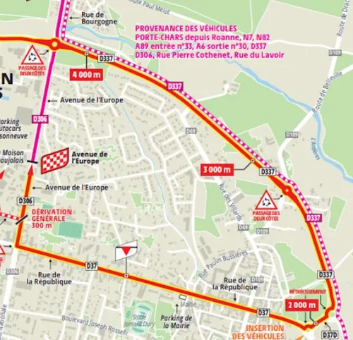 Starten doen de coureurs na de lunch in Roanne, een plaats gelegen aan de rivier de Loire. Vanuit Roanne begint de weg vrij snel licht omhoog te lopen. In de eerste tien kilometer moeten er 176 hoogtemeters afgewerkt worden, wat we toch wel vals play mogen noemen. Na een korte afdaling beginnen we vervolgens aan de heuvelachtige zone van deze wedstrijd, met de Cote de Thizy-les-Bourgs als eerste obstakel. Deze 4,4 kilometer lange heuvel heeft een gemiddeld stijgingspercentage van 5,6 procent.