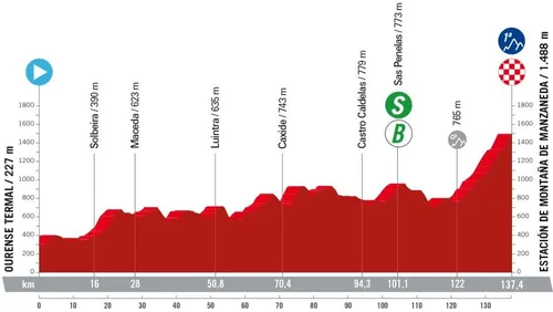 Starten doen de renners bij de thermaalbaden van Ourense, gelegen in Galicië. Het is een vrij korte etappe, van slechts 137 kilometer.
