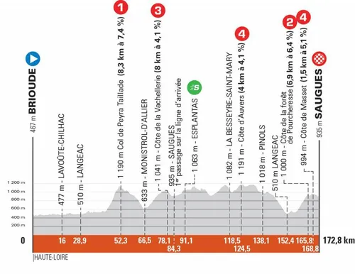 Na de top van die laatste is het nog zo'n vier kilometer in dalende lijn naar finishplaats Saugues, over voornamelijk rechte wegen. De obstakels in deze slotfase zijn niet onoverkomelijk, al kunnen de weersomstandigheden in Saugues roet in het eten gooien.