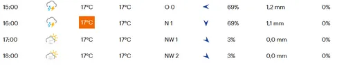 Erg lekker weer wordt het niet in Zwitserland. In de finishplaats gaat het er 's middags heftig aan toe met regen en onweer. Hopelijk kunnen de renners dat vermijden, want rond de finish van de etappe (17.20 uur) is er een stuk minder kans op regenval. Dat is wat je wil hebben, wanneer je met een peloton door de bochten van een Zwitsers plaatsje rijdt. Hopelijk gaat de regen verder geen problemen opleveren.