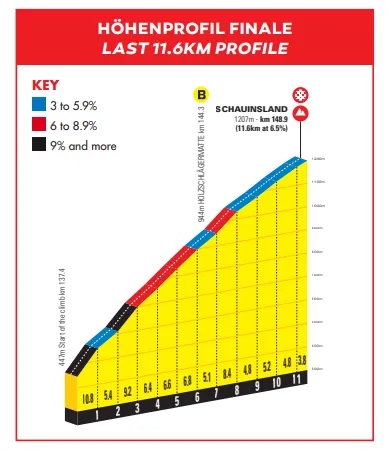 Ronde van Duitsland heeft voor het eerst sinds de terugkeer weer een heuse bergrit in het parcours opgenomen. De renners worden naar Schauinsland gestuurd, met aankomst bergop.