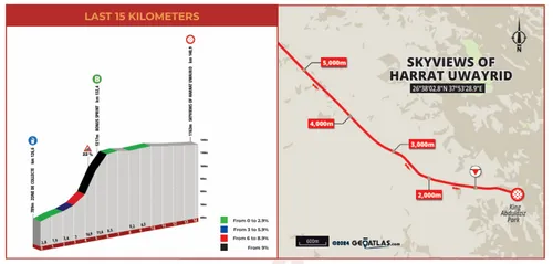 AlUla Tour mag dan verstoten zijn door Mountain Wikrah, het plateau van Harrat Uwayrid is nog altijd present. Deze beklimming van 2,5 kilometer aan maar liefst 12 procent gemiddeld gaat hoe dan ook nog voor spanning zorgen voor het algemeen klassement.