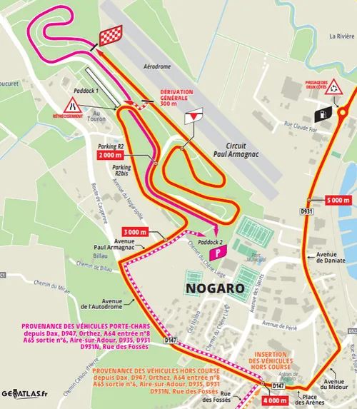 Enfin, snel naar de finale dan. Op zo'n 28 kilometer van de meet hebben we met de Cote de Demu (twee kilometer aan 3,5 procent) het enige obstakel van de dag, maar dat is buiten de razendsnelle slotfase gerekend. Daarin finishen we namelijk op het circuit in Nogaro, ook wel bekend als het Circuit Paul Armagnac.