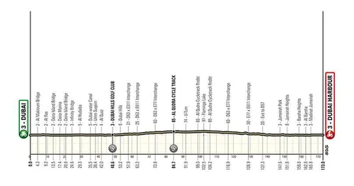 Nadien trekt men terug naar de grote stad, waar gefinisht gaat worden nabij de Jumeira Palmeilanden. Daar horen wel de nodige rotondes bij, waar het peloton zich in 2022 met onder meer Mathias Vacek al op verkeek. Afgelopen seizoen was Juan Sebastian Molano