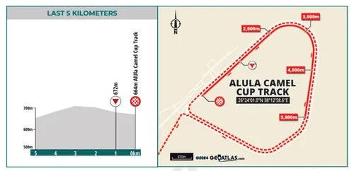 AlUla Tour wordt vormgegeven met start en finish bij de Camel Cup Track van AlUla. Daar, met lichte klim en afdaling net voor het slot, finishten we vorig seizoen ook al eens, waarbij