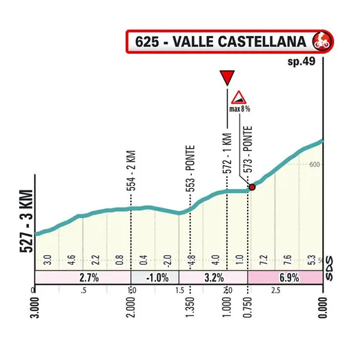 56,7 km: Castellalto (7,7 km a 5,4%)