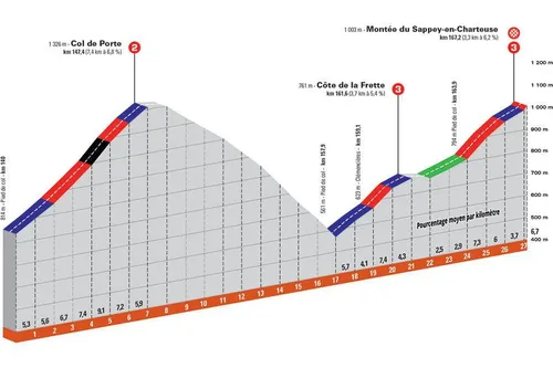 Eenmaal beneden loopt de weg gelijk weer omhoog, al wordt het vanaf hier nooit meer echt lastig. De Col de la Frette (3,7 kilometer aan 5,4 procent) en de Montée du Sappey-en-Chartreuse (3,3 kilometer aan 6,2 procent) zijn onderdeel van de absolute slotfase. In de laatste drie kilometer vinden we nog wel een stuk dat stijgt tot boven de zeven procent en de punch naar de finish gaat aan 6,7 procent. Komt er hier iemand solo aan? Iemand uit de kopgroep? Of gaan we in een uitgedund pelotonnetje bergop sprinten?