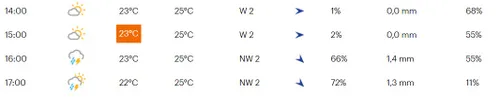 We koersen deze dag veelal in noord-oostelijke richting en het weer is andermaal uitstekend. Bij de start om 11.40 uur in Loriol-sur-Drôme is het al 25 graden met een zuid-westelijke wind aan windkracht drie. Dat betekent voor het overgrote deel van de etappe wind in de rug, eigenlijk totdat we aan de finale gaan beginnen. In de laatste vijftig kilometer maken we een lus en finishen we in zuid-westelijke richting in Le Sappey-en-Chartreuse. Daar is het met 23 graden ook al lekker warm, al kan er rond de finishtijd om 16.00 uur nog wel een buitje vallen. De wind neemt in de finale af en is met windkracht twee niet noemenswaardig.