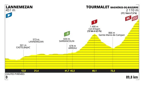 Parcours etappe 7: Lannemezan - Col du Tourmalet (89,8 km)