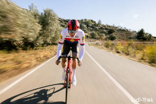 Mathias Vacek, een beresterke Tsjech van Lidl-Trek. Die formatie zou eigenlijk met Mads Pedersen naar de Spaanse ronde trekken, maar besloot uiteindelijk toch wat te schuiven met de samenstelling voor de verschillende wedstrijden.