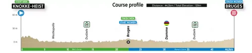 De vrouwen maken niet de ommekeer naar Knokke-Heist, maar worden gesommeerd om een ronde rondom Brugge te rijden. Dit doen ze door naar via Damme naar Dudzele te trekken, waarna de laatste acht kilometer dezelfde zijn als het door de mannen afgewerkt slotstuk naar Brugge.