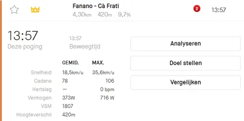gemiddeld 373 watt, met een piek van 716 watt. Met die laatste beuk reed hij in