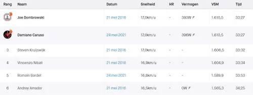 Op stroken twee en drie keerde de rust wat terug, al werd het tempo constant hoog gehouden door onder meer Astana-Premier Tech. Toch was het Emanuel Buchmann die voor definitieve verschillen zorgde. Na de vierde en laatste strook (waar de Duitser met de andere favorieten aan 37 per uur overheen jakkerde) ging hij aan op de geasfalteerde slotklim. Op zijn piek legde Buchmann 735 watt aan de dag, vermogens die we bij de bijna even zware Bernal ook al zagen. Het was dan ook niet gek dat Bernal de aanval kon beantwoorden. Buchmann voltooide de klim aan gemiddeld 387 watt, met zijn 59 kilo goed voor 6,56 watt per kilogram! Dat zijn gemiddeldes die langzaam in de buurt komen van