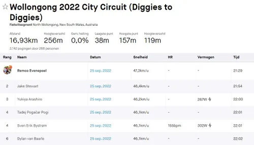 de snelste van de dag op Mount Pleasant in 2.12 minuten, Evenepoel pakte daar niet eens de grote winst en noteerde met 2.20 zijn snelste klimtijd.