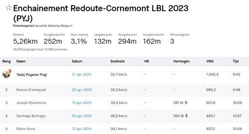 op naam van Jarno Widar. Waar Widar bij z'n poging echter uitbolde na de rop van de Redoute, daar pakte Pogacar juist de meeste winst in het stuk erna. Zoals Remco Evenepoel dat in 2023 al deed, mét de beklimming van Cornemont erbij. Pogacar was