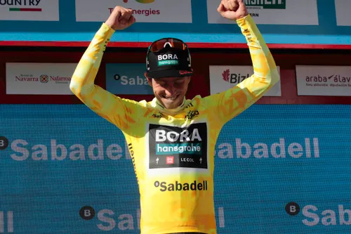 Ide Schelling, winnaar van een lastige rit in de Ronde van het Baskenland.