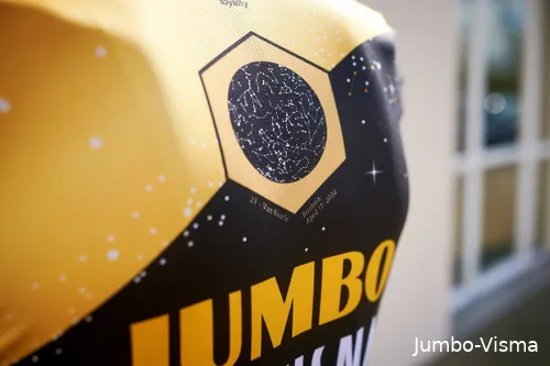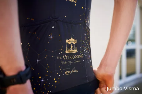 'Het speciale ontwerp is gebaseerd op de kracht van dromen', zo valt er te lezen in een persbericht. Het shirt heet 'The Vélodrome', een directe verwijzing naar de sterrenhemel op het shirt. 'Als geen ander weet Team Jumbo-Visma hoe een stevig geloof in een droom tot grootse prestaties kan leiden. Na het winnen van de Tour de France in 2022 hoopt het team dit jaar nieuwe generaties te inspireren hun eigen dromen na te jagen.'