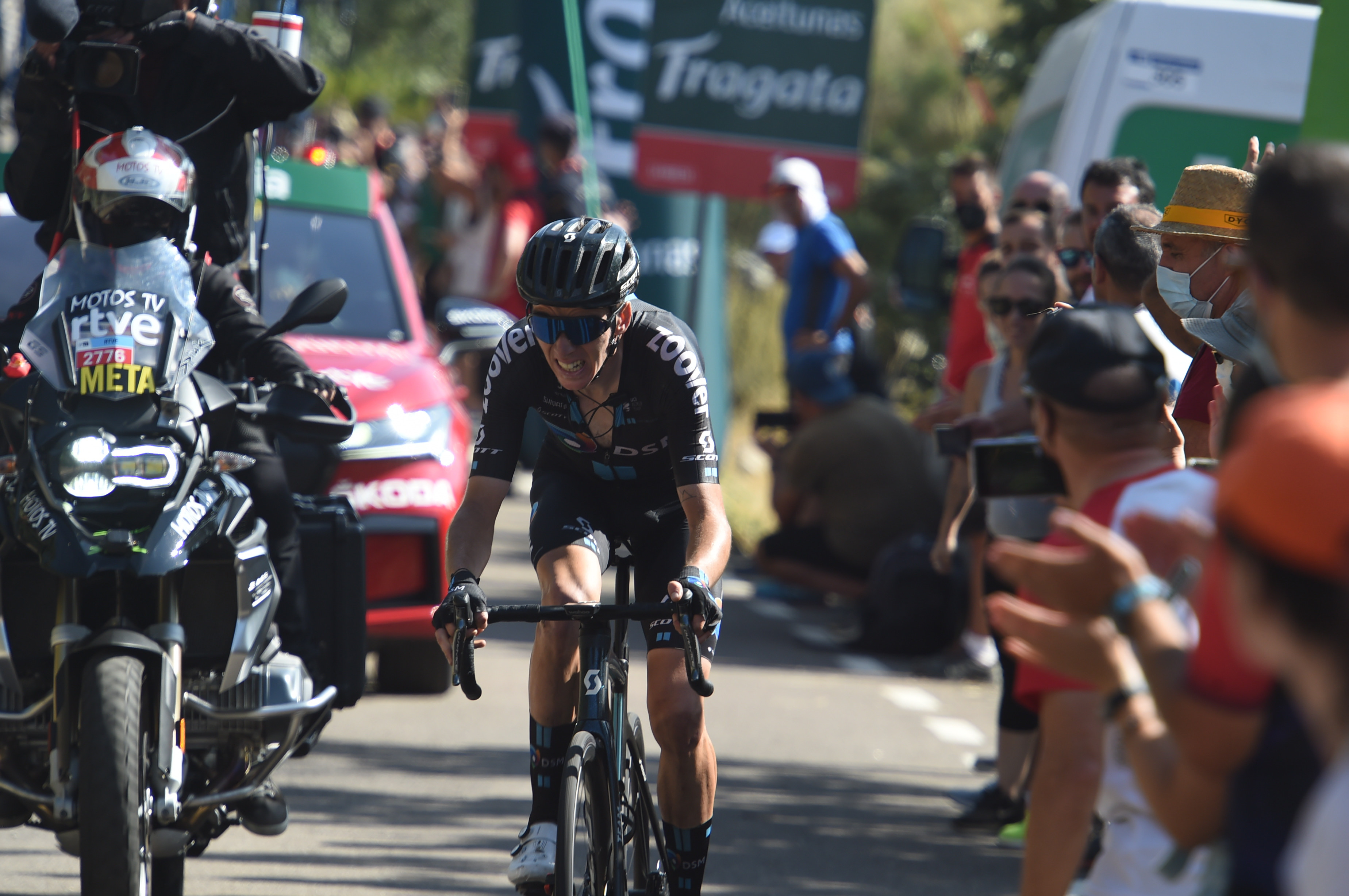 Movistar echter geen conclusies trekken: 'De vermoeidheid begint toch wel zichtbaar te worden, dus ik weet niet of het per se conservatief is.' Dat ligt ook aan de manier van koersen in deze Vuelta: 'Vaak vanaf de eerste meters volle bak, met ontsnappingen die pas na honderd kilometer wegkomen. Dat, in combinatie met de hitte, zorgt voor veel vermoeidheid. Dat is slopend.'