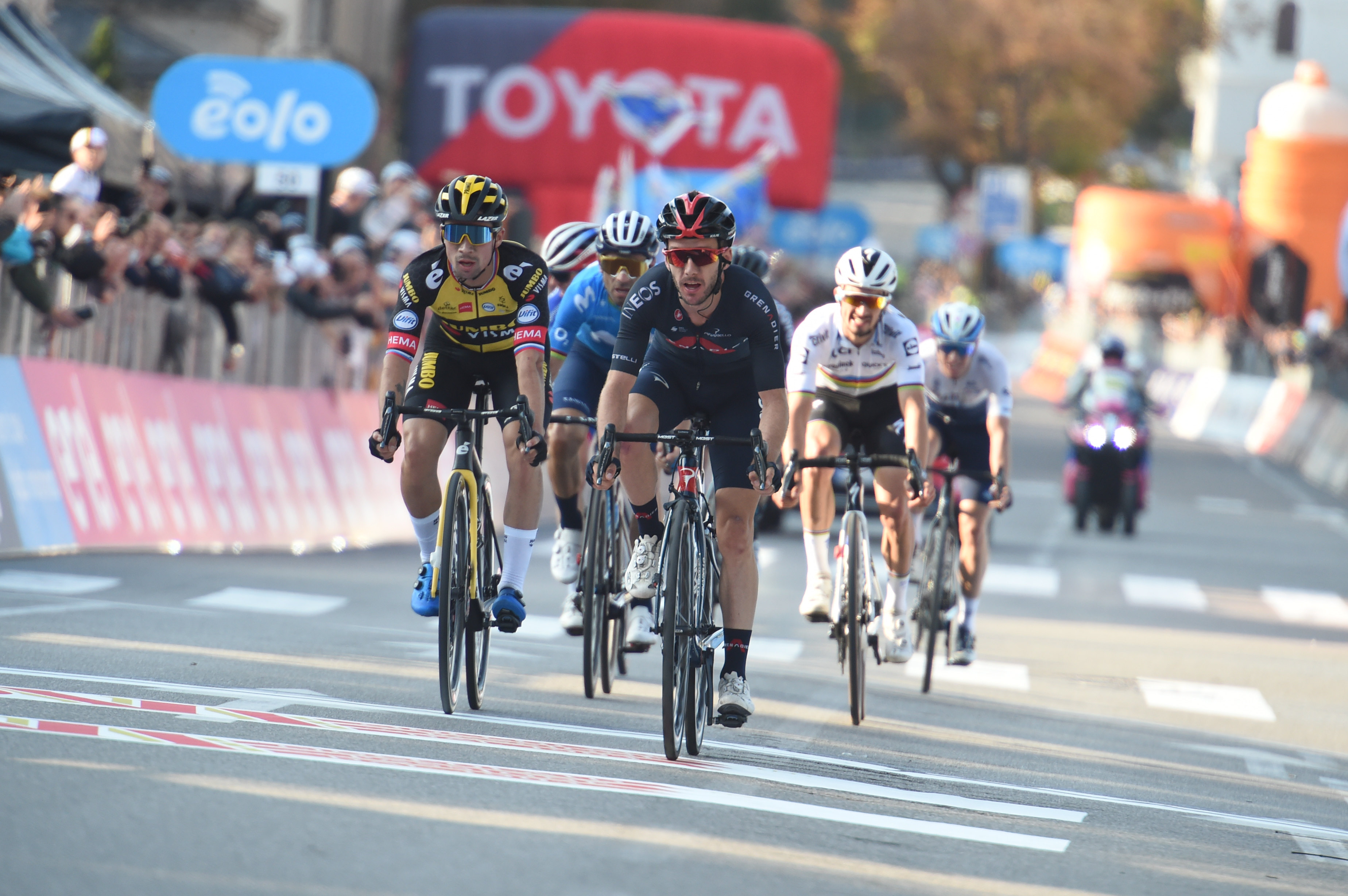 Dit laatste gebeurde alleen niet, door lange kopbeurten van het Sloveense toptalent. 'Tadej was heel erg sterk, en bleef maar op kop rijden. Op de laatste heuvel (Colle Aperto, red) probeerde hij mij ook nog uit het wiel te rijden. Er was niets tegen te beginnen, en de tweede plaats was het hoogst haalbare', aldus