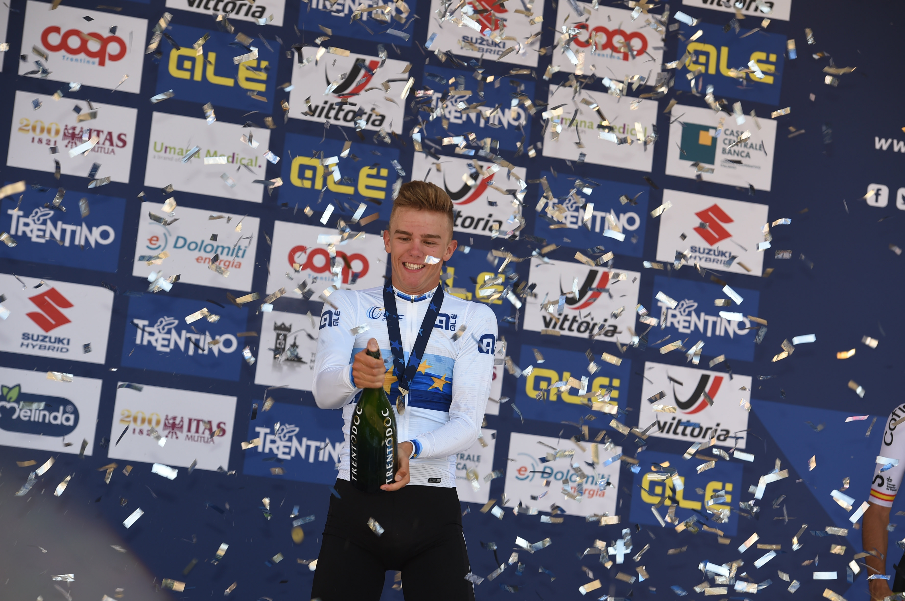 veldrijden al een grote meneer aan het worden, maar ook op de weg zet hij deze weken zoden aan de dijk. De pas 18-jarige Belg kroonde zich recent tot Europees kampioen bij de beloften en dus is de vergelijking met crossende wegrenners