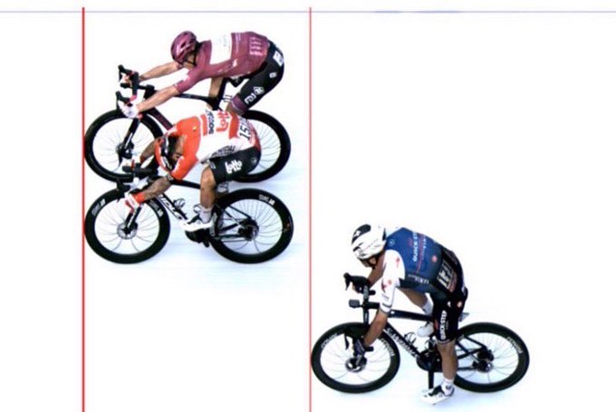 zesde etappe van de Giro d'Italia zo dichtbij de ritzege, maar het wilde nét niet lukken voor de Australiër. De sprinter van Lotto Soudal werd na een fotofinish naar de tweede plaats verwezen, achter Arnaud Démare. Omdat het verschil slechts een millimeter was, vraagt Ewan zich op Twitter af wat er was gebeurd als hij iets langere armen had gehad...
