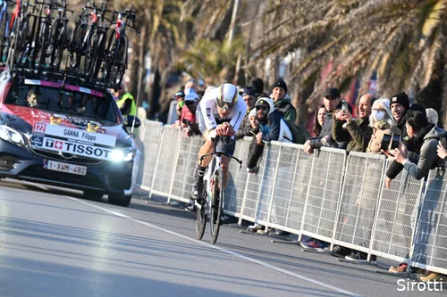 16 januari 2023 - De UCI heeft maandag bekendgemaakt dat de regels in het tijdrijden aan gaat passen. Volgauto's moeten voortaan minimaal 25 meter achter de renners rijden, om op die manier ervoor te zorgen dat de renners geen voordeel hebben van de aerodynamica die zo'n auto kort achter je levert. De afgelopen jaren plaatsten steeds meer ploegen ook een hele rits fietsen op de volgwagens, om het luchtvoordeel verder aan te wakkeren,