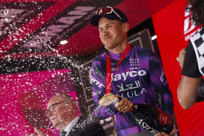 Jayco AlUla in de finale op de Montelago, wat de beslissende aanval bleek. Hij verschalkte zodoende onder meer Wilco Kelderman.