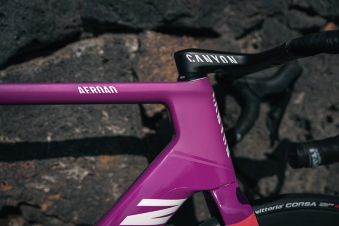 uit het roze werd gereden, pakte Canyon voor de vijfde rit uit met een paarse fiets. De leider van het puntenklassement viel zo weer goed op in het peloton. Voor de liefhebbers postte Alpecin-Fenix in de ochtend al vier foto's, waarop alle details van de fiets te zien zijn. Wauw!