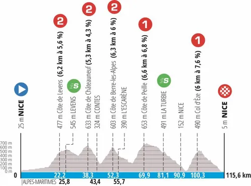 Etappe 8, zondag 13 maart 2022: Nice - Nice (115,6 km)