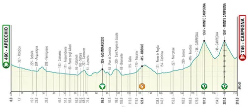Etappe 6, zaterdag 12 maart: Apecchio - Carpegna (215 km)