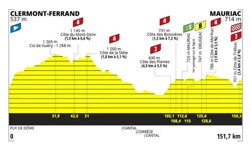 Etappe 2 - maandag 24 juli 2023: Clermont-Ferrand - Mauriac (151,7 km)