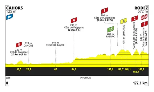 Etappe 4 - woensdag 26 juli 2023: Cahors - Rodez (177,1 km)