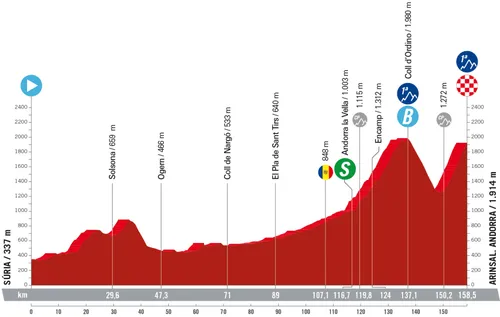 Etappe 3 - maandag 28 augustus 2023: Súria – Arinsal (158,5 km)