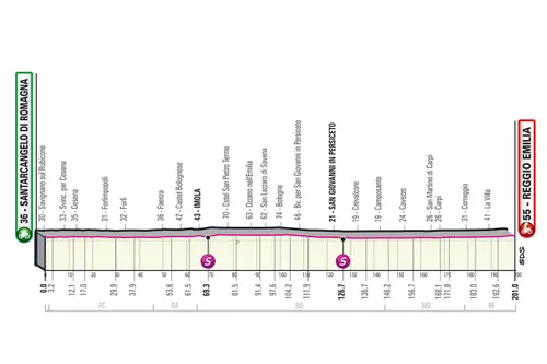 Etappe 11 - woensdag 18 mei: Santarcangelo di Romagna - Reggio Emilia (201 km)