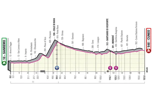 Etappe 13 - vrijdag 20 mei: Sanremo - Cuneo (157 km)