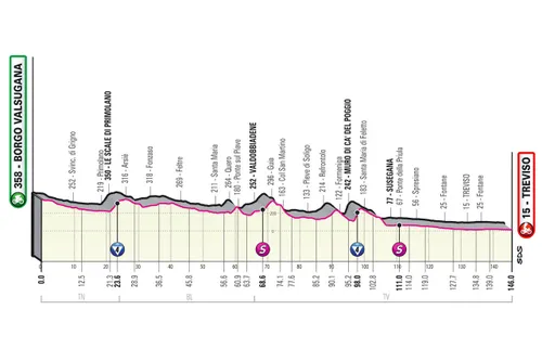Etappe 18 - donderdag 26 mei: Borgo Valsugana - Treviso (146 km)