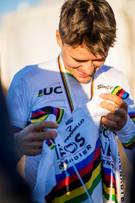 Hoe trots Pidcock ook poseert met zijn nieuwe tricot, in de cross zullen we 'm dit seizoen niet meer in actie zien. Na het WK staan er nog enkele veldritten gepland en Pidcock hintte lichtjes naar een startbewijs bij de Krawatencross in Lille. 'Ik denk dat het geen goed idee is om te racen. Maar als ik er toch ben, ga ik het misschien toch doen', zei hij na het WK.