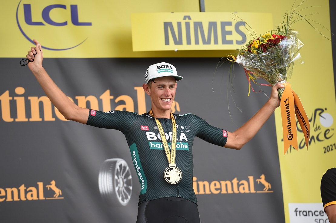 Nils Politt. De 27-jarige Duitsers van BORA-hansgrohe bleek de sterkste van een kopgroep van dertien, die verrassend snel de zege van het peloton kreeg. Veel andere sterke renners in de kopgroep gokten verkeerd of kwamen er simpelweg niet aan te pas.