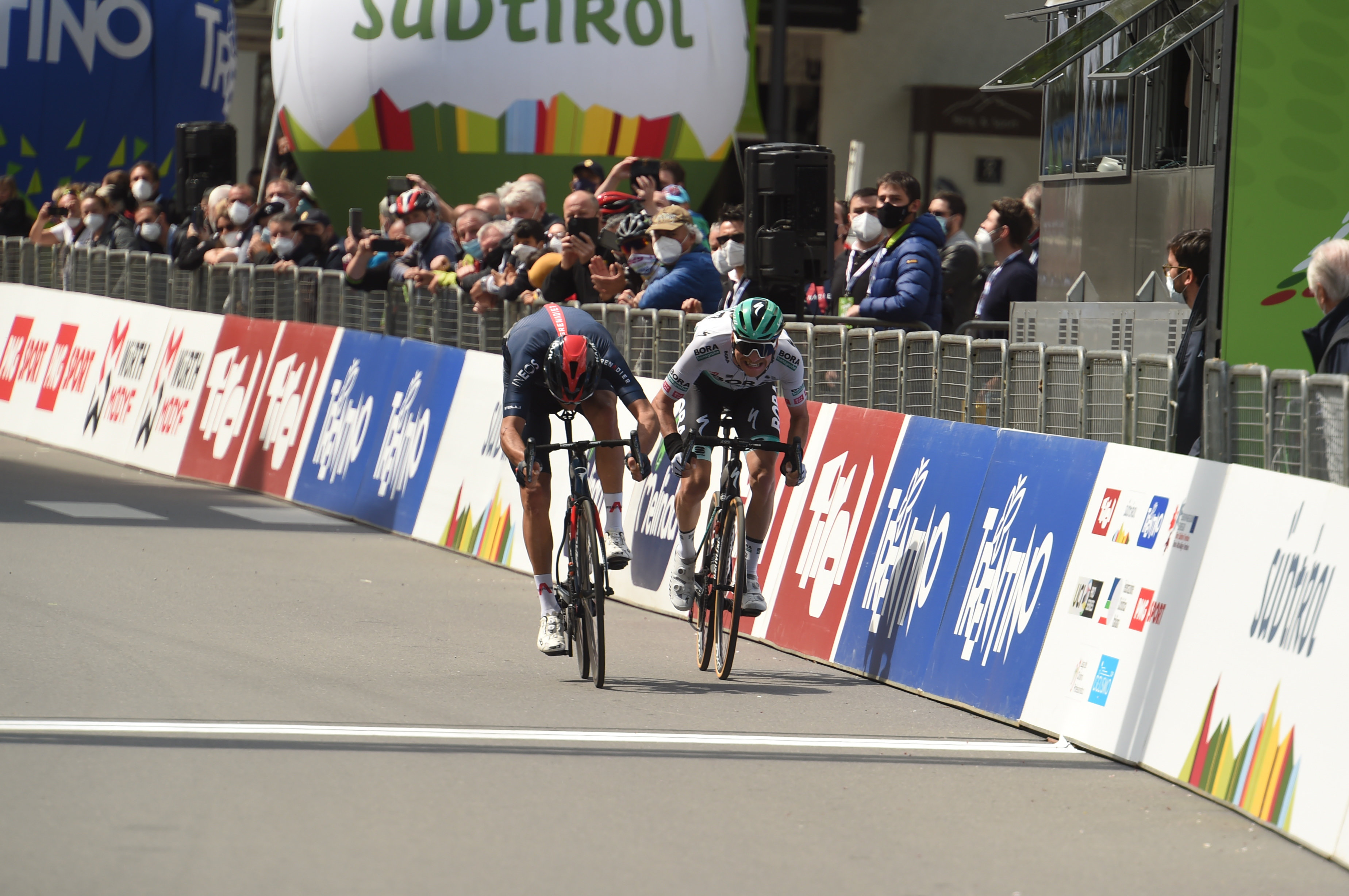 BORA-hansgrohe. Door de goede positionering in de laatste bocht miste hij de boot. 'Slim van Gianni (Moscon red.) dat hij van kop af sprintte.' Großschartner gaat echter niet bij de pakken neerzitten. 'Dit geeft vertrouwen en ik kijk uit naar de komende etappes.'