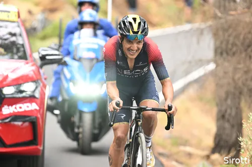 Devenyns ging volgens de mannen van Jumbo-Visma niet hard genoeg, daar Robert Gesink zich op kop van de grote groep meldde. Ondertussen waren de oudgedienden Sánchez en Carapaz er voorin vandoor gegaan, met de etappezege als doel. Opvallend: de ploeggenoten van Carapaz, INEOS Grenadiers dus, maakten in het peloton flink tempo. Desondanks begonnen ze vooraan met twee minuten voorgift aan de laatste beklimming.