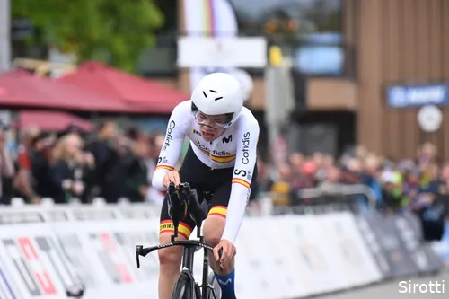 wereldtitel tijdrijden voor beloften door in Zürich af te rekenen met topfavoriet Alec Segaert. De Spanjaard van