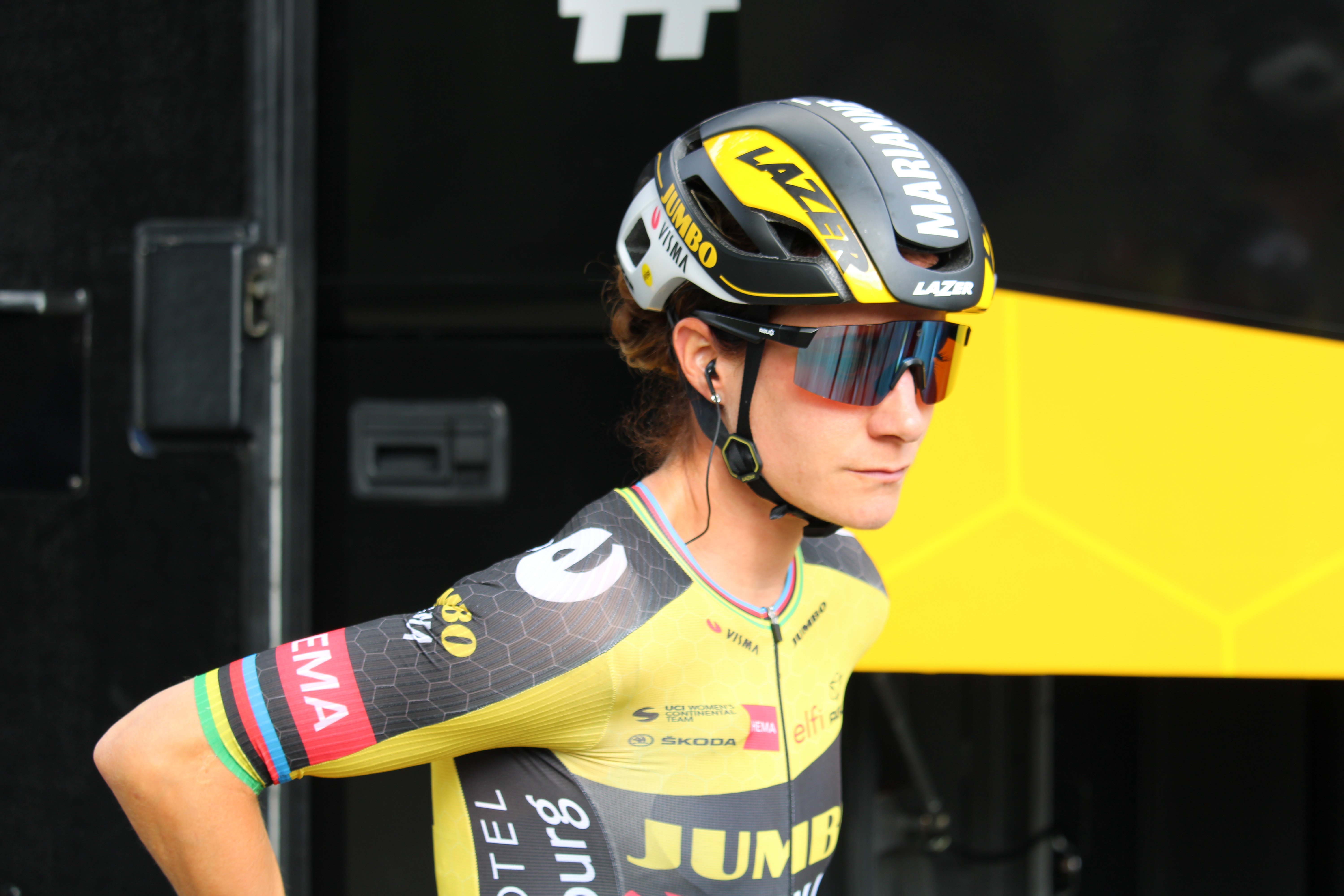 ploegsite van Jumbo-Visma bespreekt Vos de moeilijke etappe. 'Het was echt ontzettend zwaar. We hadden met het team de tactiek om de race goed te controleren. Dat pakte bijzonder goed uit. Toen Anouska (Koster, red.) solo voor de aanval koos, moesten de teams van achter gaan werken. Uiteindelijk sloten we met zijn drieën bij Anouska aan.' Dat was samen met Katarzyna Niewiadoma en Van den Broek-Blaak, en de drie wisten dat dat een beslissend moment was. 'Toen wist ik al dat dat het moment was om hem door te trekken. Het peloton wist nog dichtbij te komen, maar we hadden het goed uitgerekend. Het is mooi om deze etappe te kunnen winnen, daar gaan we eerst van genieten als ploeg.'