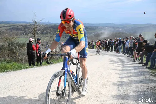 Lidl-Trek reed een prima koers, maar zijn ploeg had flink wat pech onderweg op de witte wegen van Toscane. Ondanks dat waren er ook lichtpuntjes, zoals de knappe prestatie van supertiener Albert Philipsen, die kon rekenen op lof van zijn Nederlandse ploeggenoot.