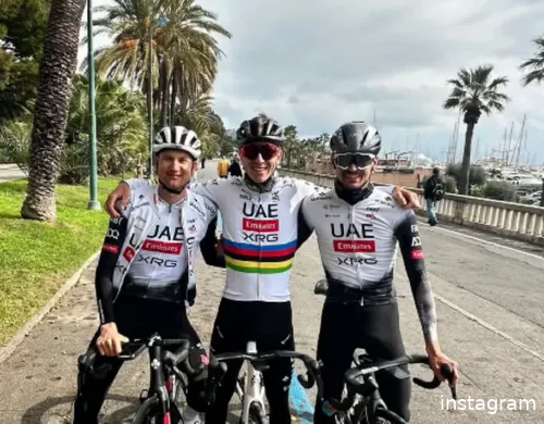 Pogacar - die nog nooit het Openingsweekend reed - is er op zaterdag en zondag dus niet bij. De Sloveen geniet van een weekendje vrijaf na het winnen van de UAE Tour en zal volgende week in Strade Bianche terug in competitie keren. Stilzitten doet hij overigens allerminst: dinsdag plaatste hij nog een foto vanuit... jawel, Sanremo. Ploeggenoten