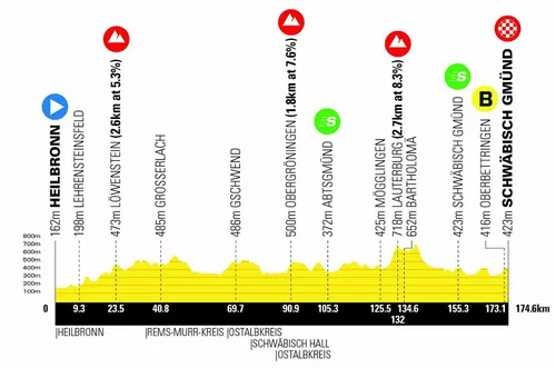 Etappe 2, vrijdag 23 augustus: Heilbronn - Schwäbisch Gmünd (174,6 km)
