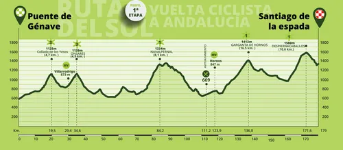 Etappe 1, woensdag 15 februari: Puente de Génave - Santiago de la Espada (179,0 km)